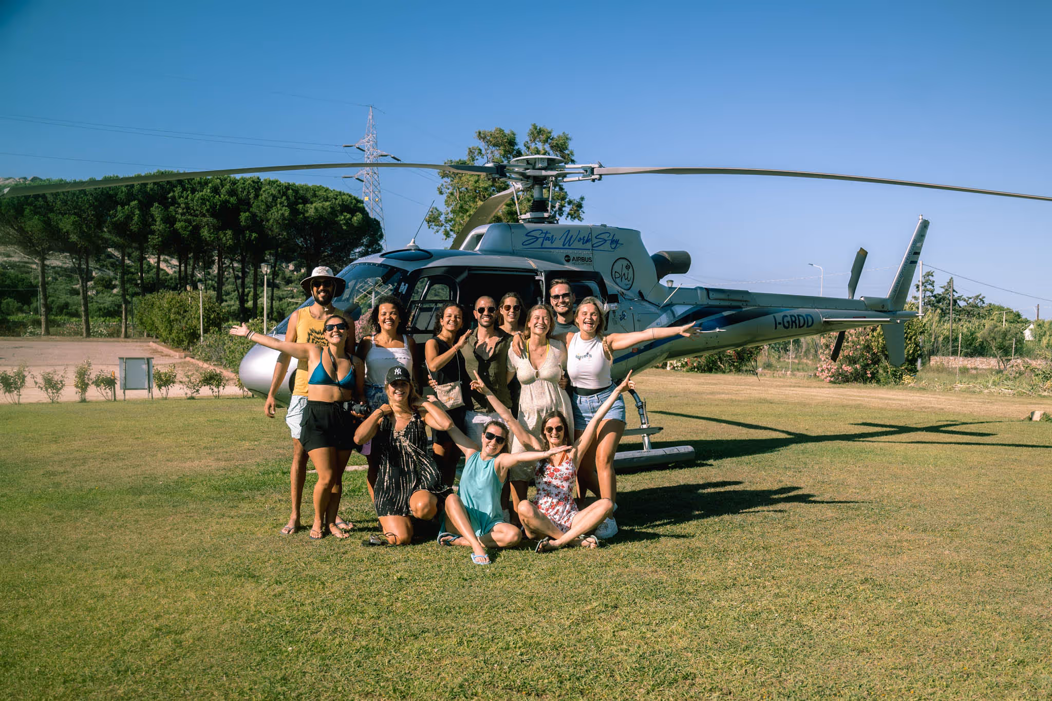 How did we end up boarding 12 strangers in a helicopter to fly over Sardinia's most exclusive area without any consent?