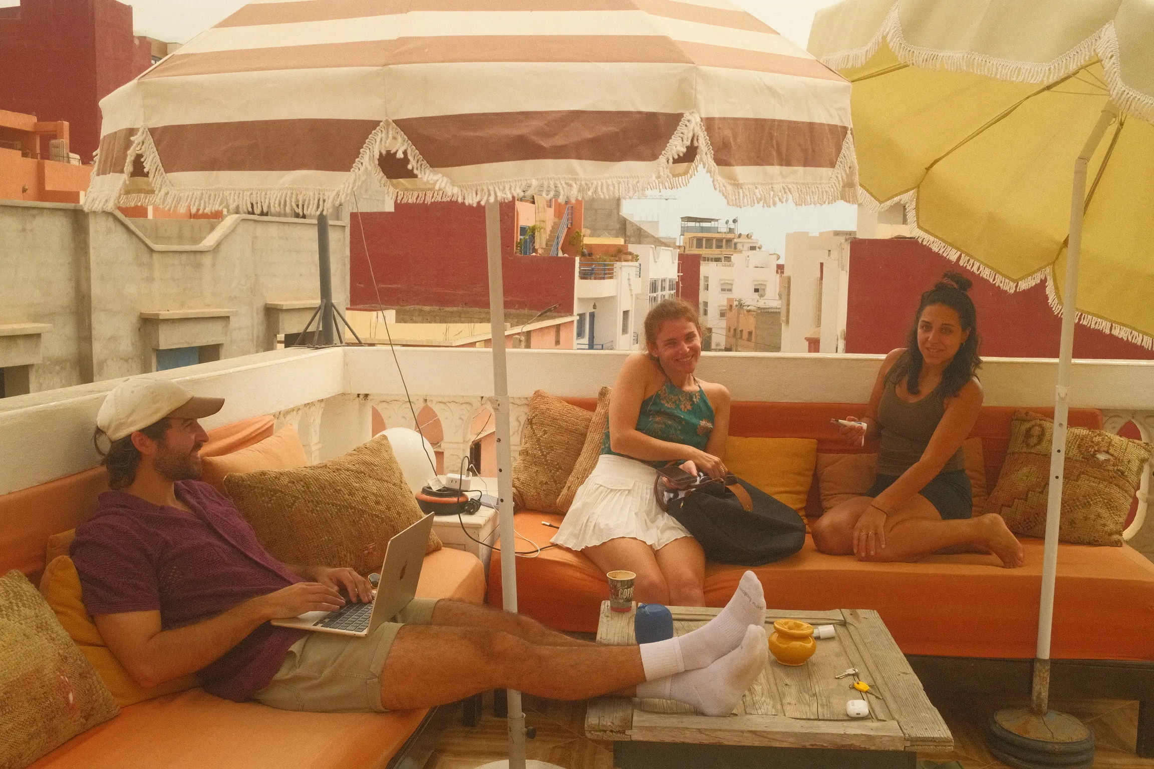 Rooftop workspaces, private desks, and Wi-Fi strong enough to stream, Zoom, or debug under the Moroccan sun. Working here means mountain views, sea breeze, and enough coffee to code all day.