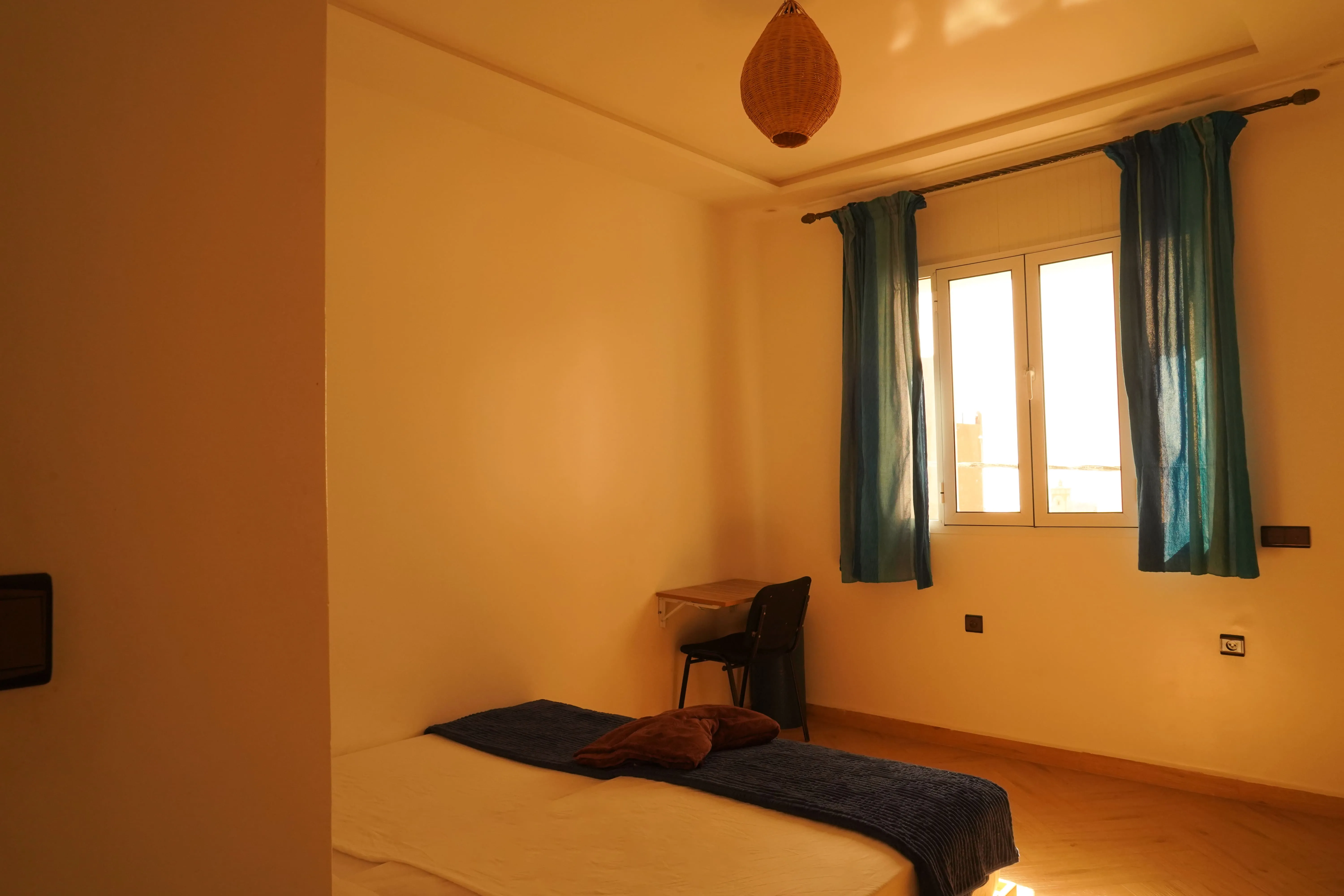 A spacious, light-filled room with private bathroom, perfect for solo travelers or couples. Peaceful, functional, and designed for remote work.